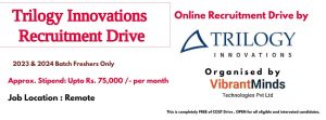 7236 (04th Sept 2024) Recruitment Drive for Trilogy Innovations | Hiring for “Software Development Engineer Intern” as Freshers | Drive Organized by VibrantMinds Technologies Pvt. Ltd. | Approx. Stipend: Upto Rs. 75,000/- Per Month